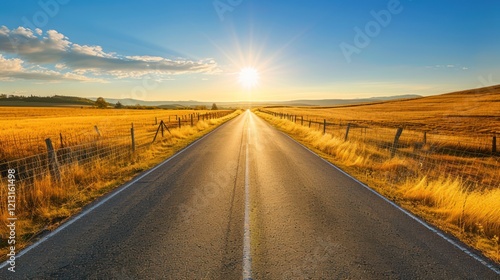 Naklejka premium Asphalt Road Leading Towards the Sunset