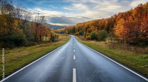 © atar, Fototapeta premium Asphalt Road Through Autumn Forest