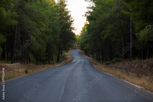 © alicobanoglu, Fototapeta premium Asphalt road through green pine forest