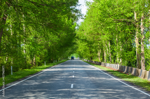 © k_samurkas, Fototapeta premium Asphalt road through green swamp trees, Georgia