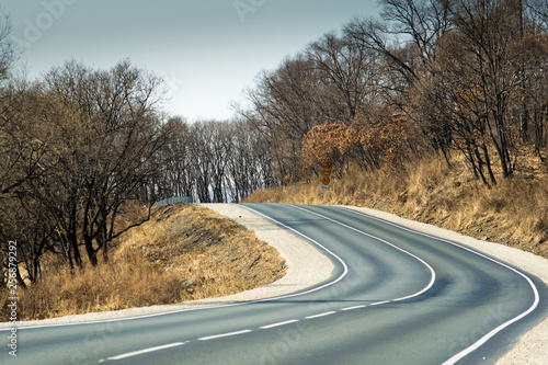 © gennady161, Fototapeta premium Asphalt road through the forest in the highlands