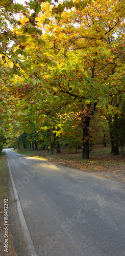 © zoka74, Naklejka premium Asphalt road through the forest. Trees along the road