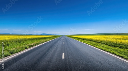 © Anak, Naklejka premium Asphalt Road Through Yellow Fields
