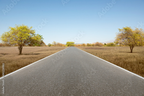 © Leo Lintang, Fototapeta premium Asphalt road with grass and trees