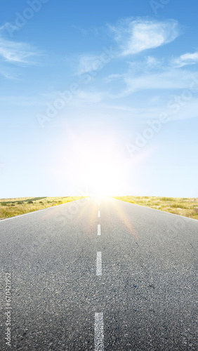 © Leo Lintang, Naklejka premium Asphalt road with green grass