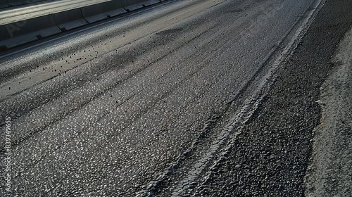 Naklejka premium Asphalt texture of an empty motorway, close-up, detailed view of materials and construction, no traffic, no humans