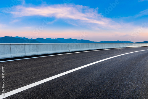 © ABCDstock, Fototapeta premium Asphalt viaduct road and beautiful sky cloud at sunrise.