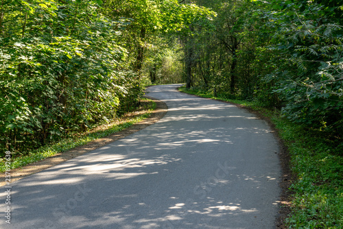 Fototapeta premium asphalt wavy road in forest in summer