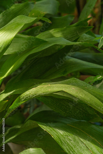Obraz premium Aspidistra elatior foliage close-up in greenhouse