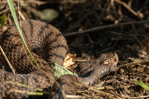 © Markus Nobel, Fototapeta premium Aspisviper (Schlange) zwischen Wald uns frisch gemähtem Rasen (Viper)