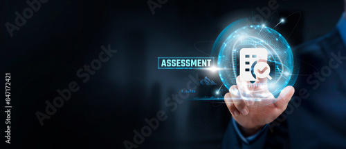 Fototapeta premium Assessment, Evaluation: Businessman Touching Performance Metrics and Global...