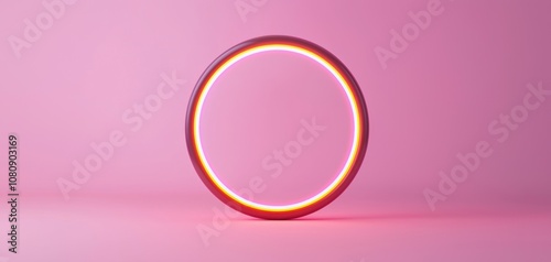 Fototapeta premium Assistant search engine concept. A minimalist ring shaped light against a soft pink background, creating a modern and aesthetic vibe.