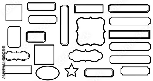 Obraz premium Assorted Black and White Outline Label Shapes: Rectangles, Squares, Oval, Star, Decorative Frames