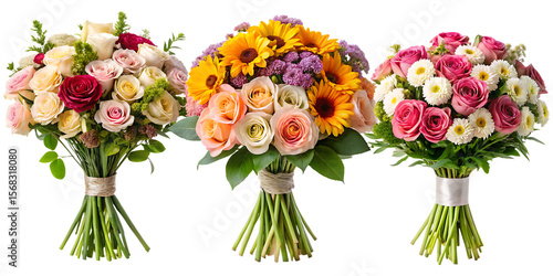 © Hamim, Obraz premium assorted bouquets roses rose lisianthus isolated on white background , png,ai generated.