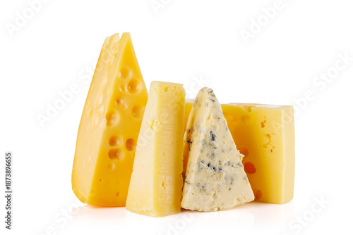 Fototapeta premium Assorted cheeses on white background