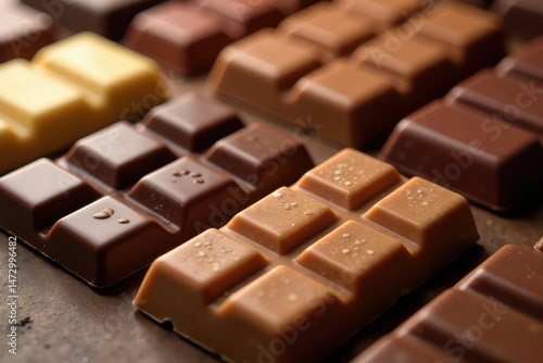 Fototapeta premium Assorted chocolate bars, various sizes and flavors , snack, bars, energy