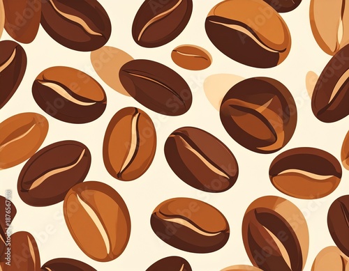 © Fajar, Obraz premium Assorted Coffee Beans Pattern on Beige Background.