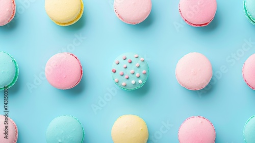 © Andrei, Obraz premium Assorted collection of vibrant macarons creating a colorful and lively background
