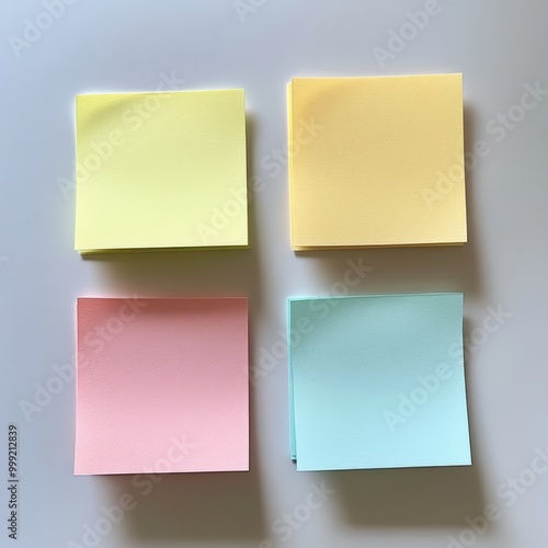 © Mandeep, Fototapeta premium Assorted colored sticky notes on a plain background