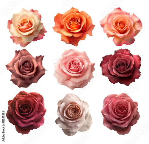 © Akuma, Fototapeta premium Assorted Colorful Roses Collection Isolated Background