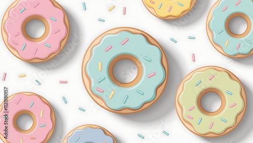 Fototapeta premium Assorted Donuts with Sprinkles on White Background
