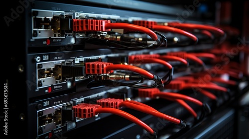 Fototapeta premium Assorted ethernet network cables properly connected to a switch for seamless...