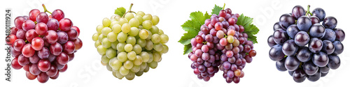 © Zalpix, Obraz premium Assorted Grapes Varieties on Transparent Background – Red, Green, Purple and Black Grape Clusters for Food Marketing, Wine Industry, and Product Packaging Design