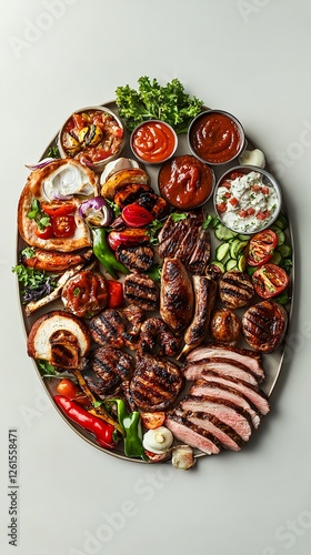 Fototapeta premium Assorted Grilled Meats and Vegetables on a Serving Platter