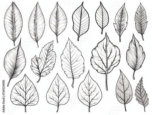Fototapeta premium Assorted leaf outlines for creative coloring activities - detailed botanical...