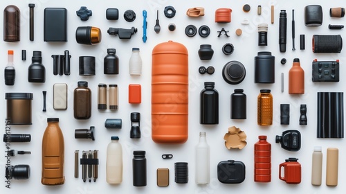 Fototapeta premium Assorted modern containers and accessories on a white background.