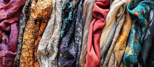 Fototapeta premium Assorted natural fabrics in vibrant colors and textures perfect for fashion design and stylish clothing collection creation