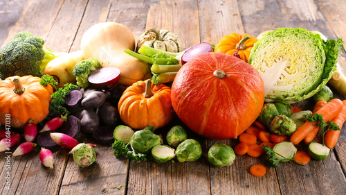 Naklejka premium assorted of squah, pumpkin and winter vegetables