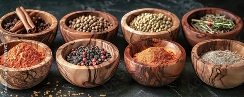 Fototapeta premium Assorted Spices in Bowls, A Flavorful Collection for Cooking