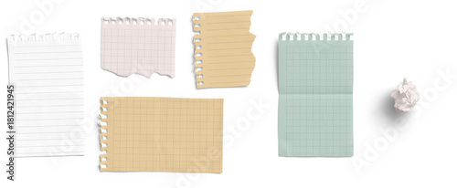 © Custom Scene, Naklejka premium Assorted Torn Note Pages and Crumpled Paper Ball