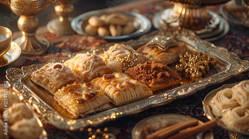 © Cep, Naklejka premium Assorted traditional Eid sweets beautifully arranged on an elegant serving tray