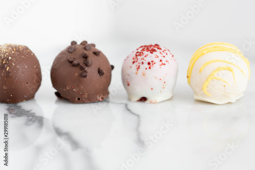 © KCULP, Obraz premium Assorted truffles on white marble background