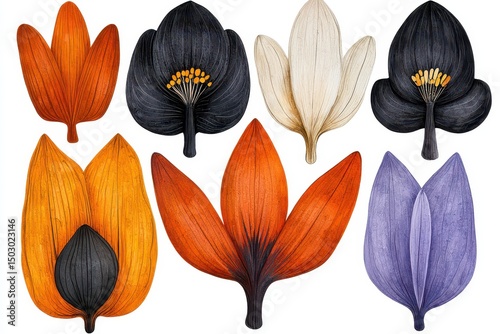© Natthapong, Fototapeta premium Assorted Watercolor Leaves in Vivid Hues on White Background Botanical Illustration