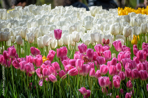 © Tasawer, Fototapeta premium assorted white and pink tulips