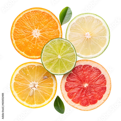 © Mahfuza, Obraz premium Assortment of citrus fruit slices isolated on transparent background