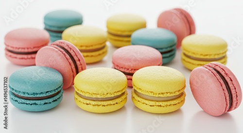 Obraz premium Assortment of Colorful Macarons on White Background Photo