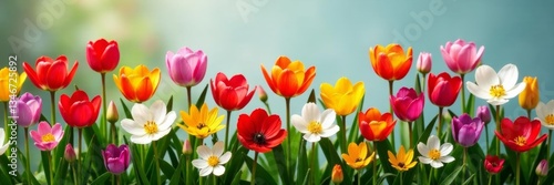 Fototapeta premium Assortment of different types of spring flowers in full bloom, blossoms,...