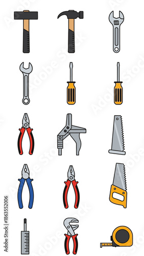 Obraz premium Assortment of essential hand tools for repair, construction, and DIY projects. Flat vector illustration of workshop equipment.