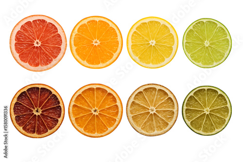 © Png stock, Fototapeta premium Assortment of fresh and dried citrus fruit slices isolated on transparent background