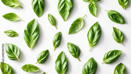 © AImmersive Imagery, Naklejka premium Assortment of fresh basil herb sprigs on white background