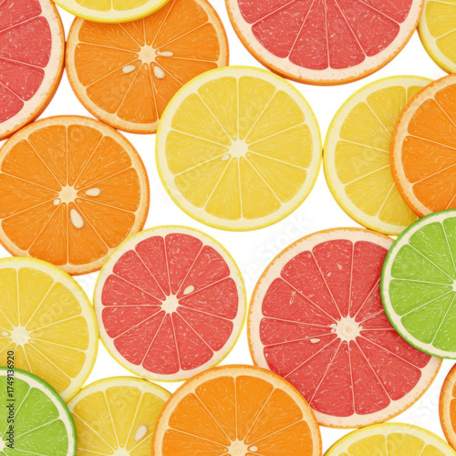 Fototapeta premium Assortment of fresh citrus fruit slices including grapefruit orange and lemon...