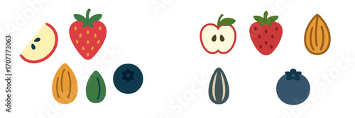 © icon_art, Fototapeta premium Assortment of fresh fruits and nuts including apple, strawberry, blueberry, and almond for healthy eating