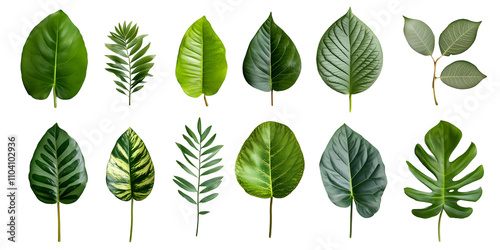 © PNG_megapixel, Fototapeta premium Assortment of Green Leaves with Various Shapes and Patterns, cutout, isolated on white background