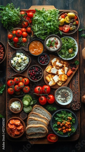 © Semi, Fototapeta premium Assortment Of Healthy Foods On Rustic Wooden Board