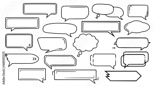 Obraz premium Assortment of twenty handdrawn speech and thought bubble outlines