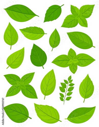 Fototapeta premium Assortment of vibrant green leaves in various shapes and sizes